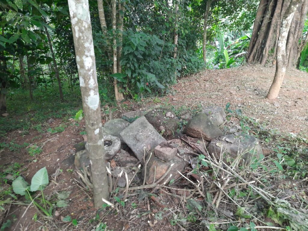 കാട് വെട്ടിത്തെളിയിച്ചപ്പോഴാണ് ടിപ്പുവിൻ്റെ പടയോട്ടക്കാലത്ത് തകർക്കപ്പെട്ട വിഷ്ണു ക്ഷേത്രം കണ്ടെത്തിയത്. മഹാവിഷ്ണുവിൻ്റെ വിഗ്രഹം പൂർണ്ണമായും അടിച്ചുടച്ചിരുന്നു. ശ്രീ കോവിലും തകർന്ന നിലയിലായിരുന്നു. ചുറ്റമ്പലവും ബലിക്കല്ലും കാണാനില്ല. ക്ഷേത്രാവശിഷ്ടങ്ങൾ കുറച്ചു മാത്രമേയുള്ളു. സുബ്രഹ്മണ്യൻ, മലക്കാരി, മഹാലക്ഷ്മി, ഗണപതി, നാഗങ്ങൾ എന്നീ ഉപദൈവങ്ങളുടെ വിഗ്രഹങ്ങളൊക്കെ ഉണ്ടായിരുന്ന ക്ഷേത്രമാണ്. ക്ഷേത്രാവശിഷ്ടങ്ങൾ ബാക്കിയുള്ളത് സമീപത്തെ ഒരു കിണറ്റിൽ ഉണ്ടെന്നാണ് പഴമക്കാർ വിശ്വസിക്കുന്നത്. ആ കിണർ കാട് മൂടി കിടക്കുകയാണ്.