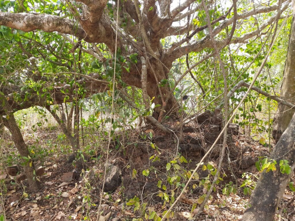 പൂത്തുലഞ്ഞ വലിയ ഒരു കുങ്കുമ മരം. അതിനു ചുവട്ടിൽ തകർന്നു കിടക്കുന്ന ചതുരാകൃതിയിലൊരു കൽത്തറ. കുങ്കുമ മരത്തിന് പണ്ടെങ്ങോ കെട്ടിയ തറയാണ് അതെന്നേ തോന്നുകയുള്ളു. തൊട്ടപ്പുറത്ത് പെരും നാഗങ്ങൾ ഊരിയ വളകൾ. കാടുപിടിച്ചു കിടക്കുന്ന ഈ പറമ്പിലൂടെ സമീപസ്ഥർ അവരുടെ വീടുകളിലേക്ക് നടക്കുന്നതിൻ്റെ ഒറ്റയടിപ്പാതയുണ്ട്.