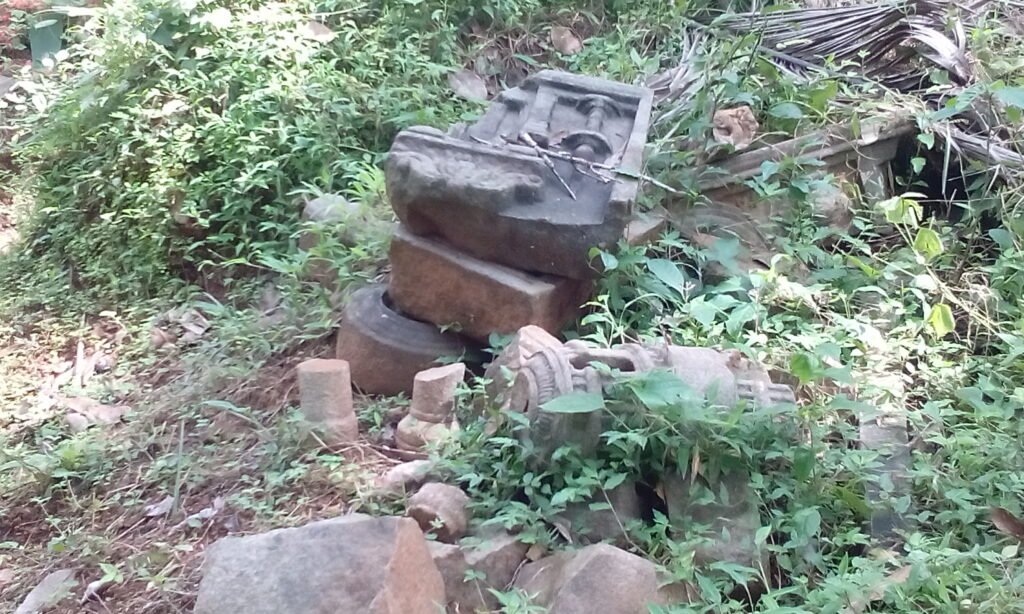ക്ഷേത്രപരിസരത്ത് നിന്നും കണ്ടെത്തിയ ക്ഷേത്രാവശിഷ്ടങ്ങൾ